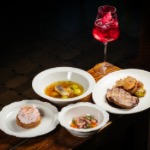 Хе из муксуна Уха из муксуна с бородинским хлебом Свинина, запечённая в ржаном тесте Песочный тарт с ягодами и шоколадом Коктейль "Полёт Гагарина": Игристое вино, кордиал крем-сода, чёрная смородина, апельсиновый ликёр
